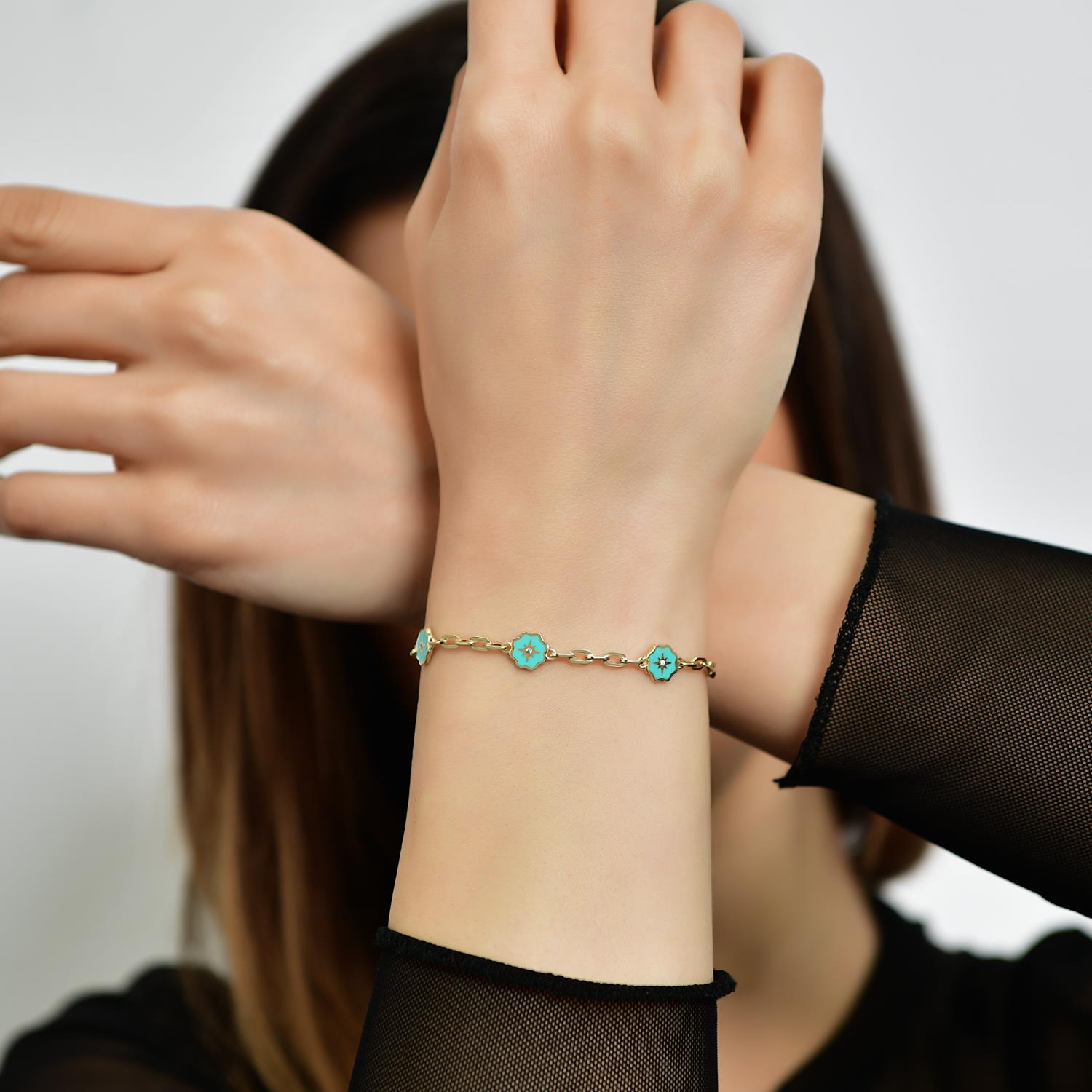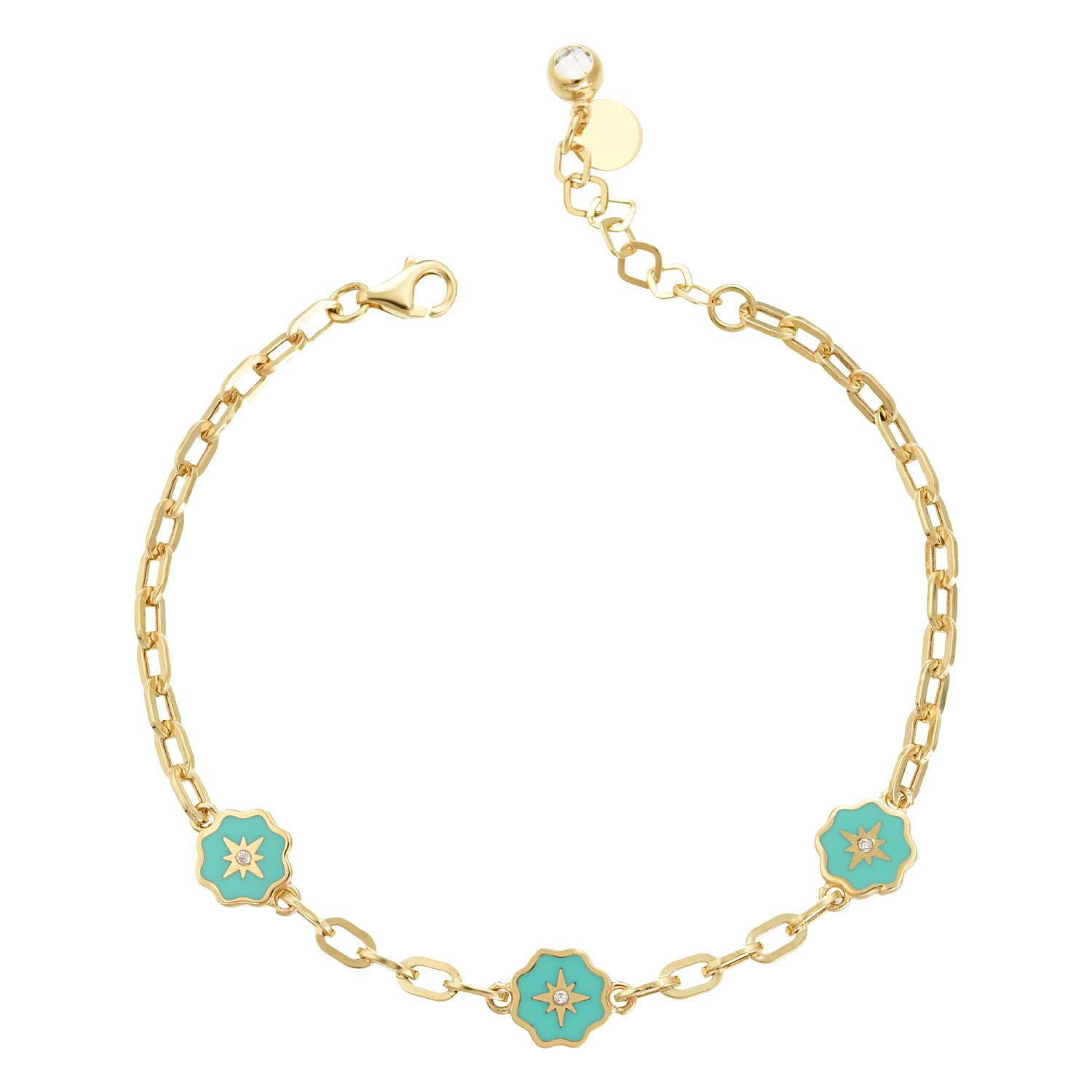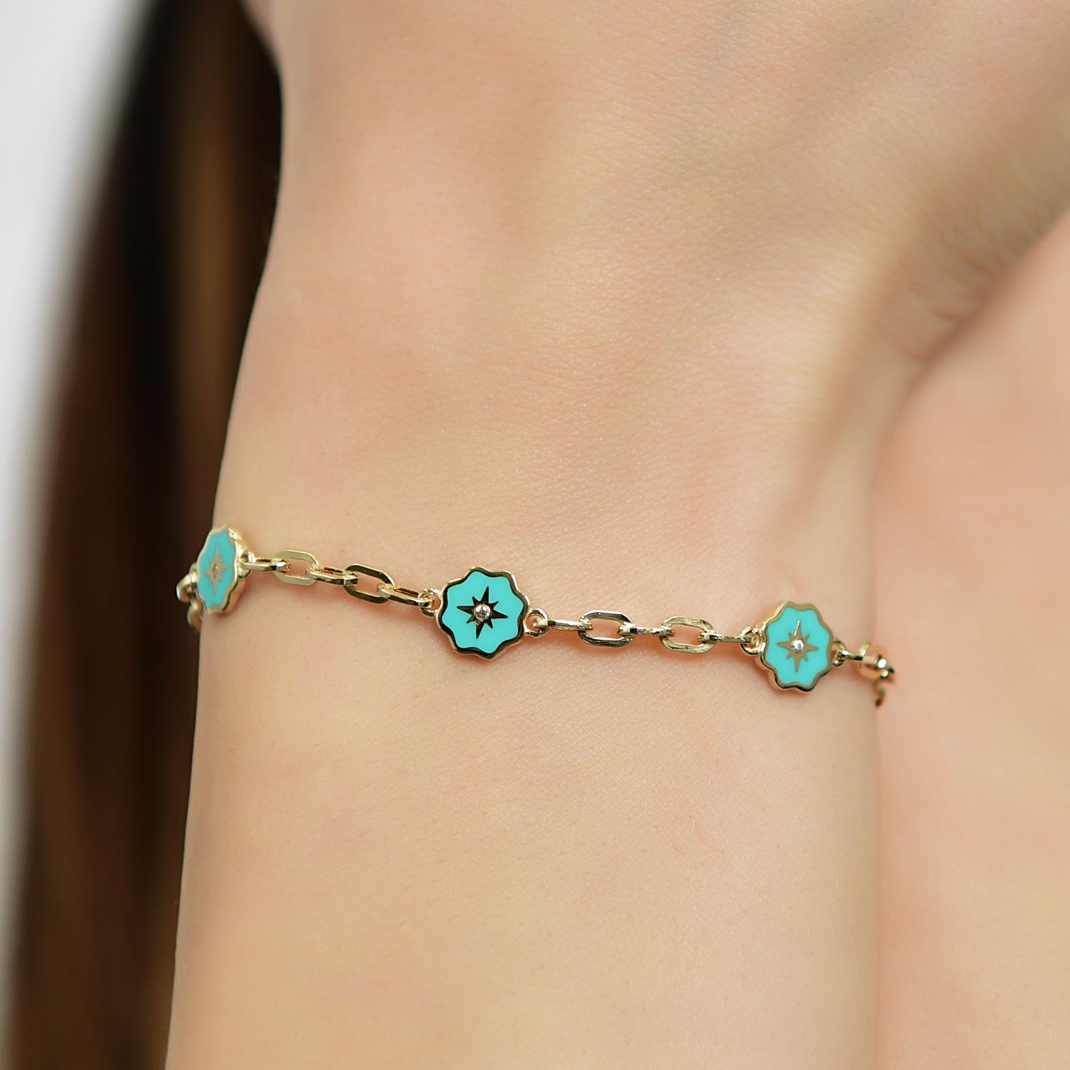 14 Ayar Altın 3'lü Mineli Yıldız Desen Bileklik