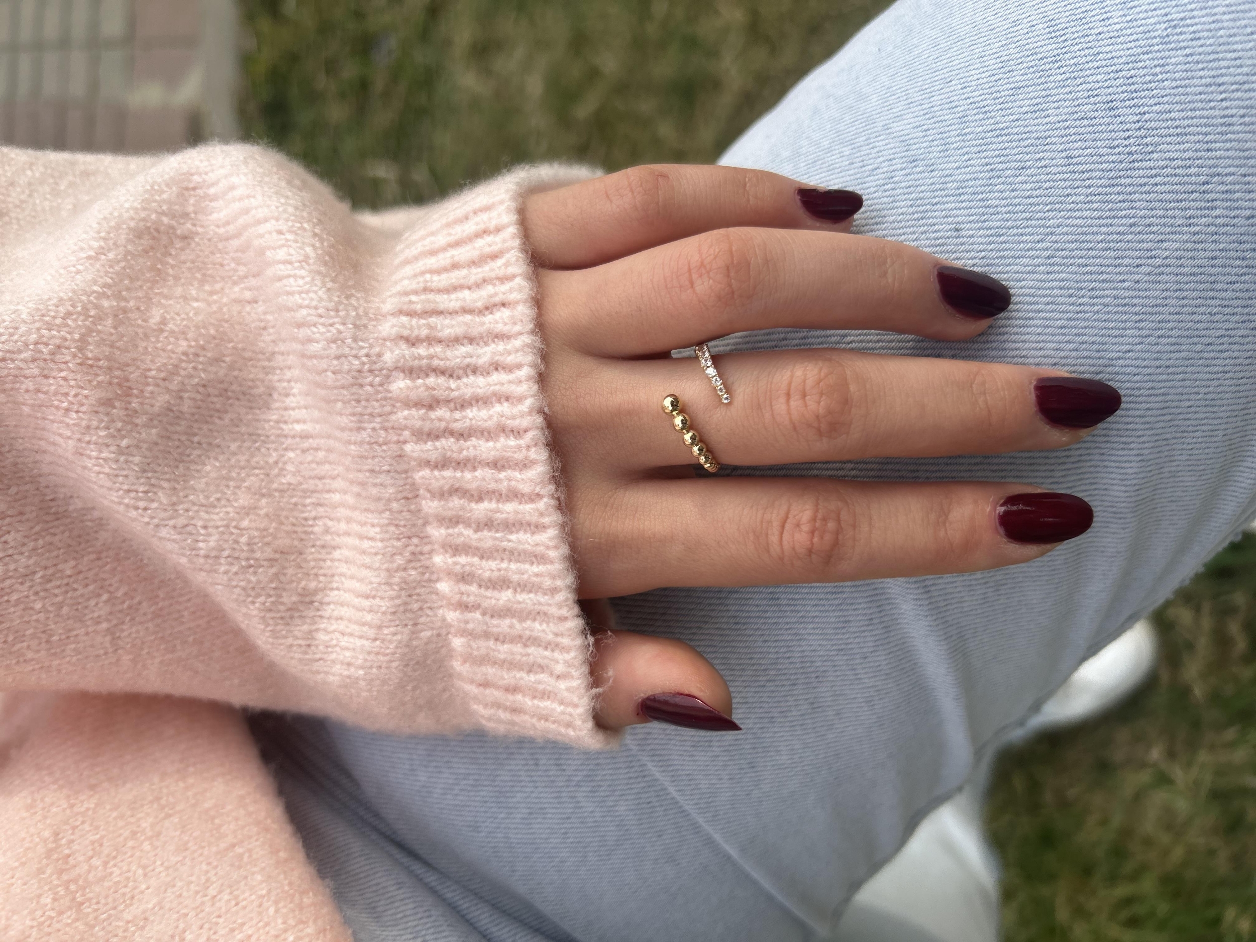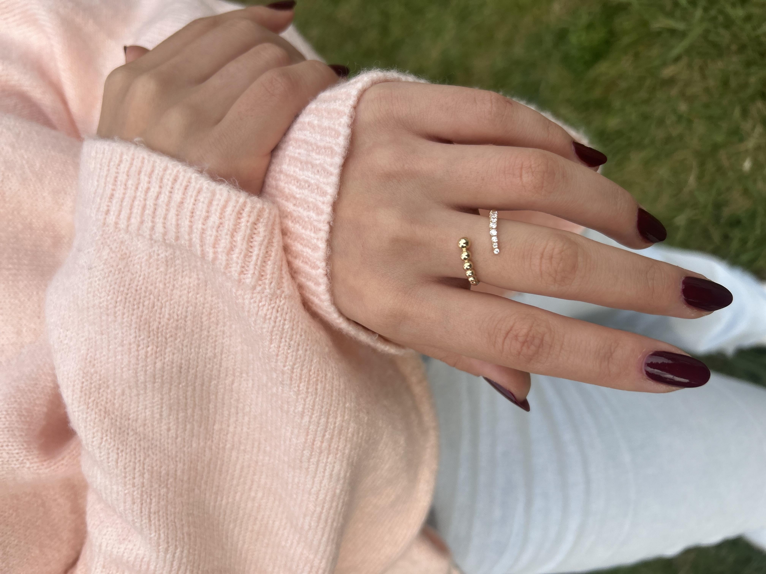 14 Ayar Altın Ayarlanabilir Taşlı Desenli Yüzük