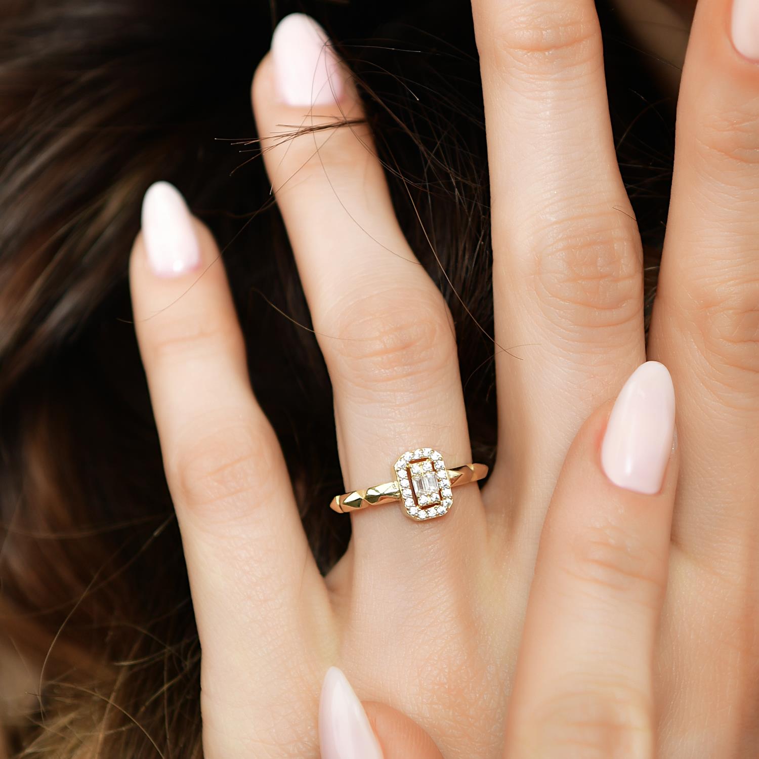 14 Ayar Altın Baget Çift Taşlı Yüzük