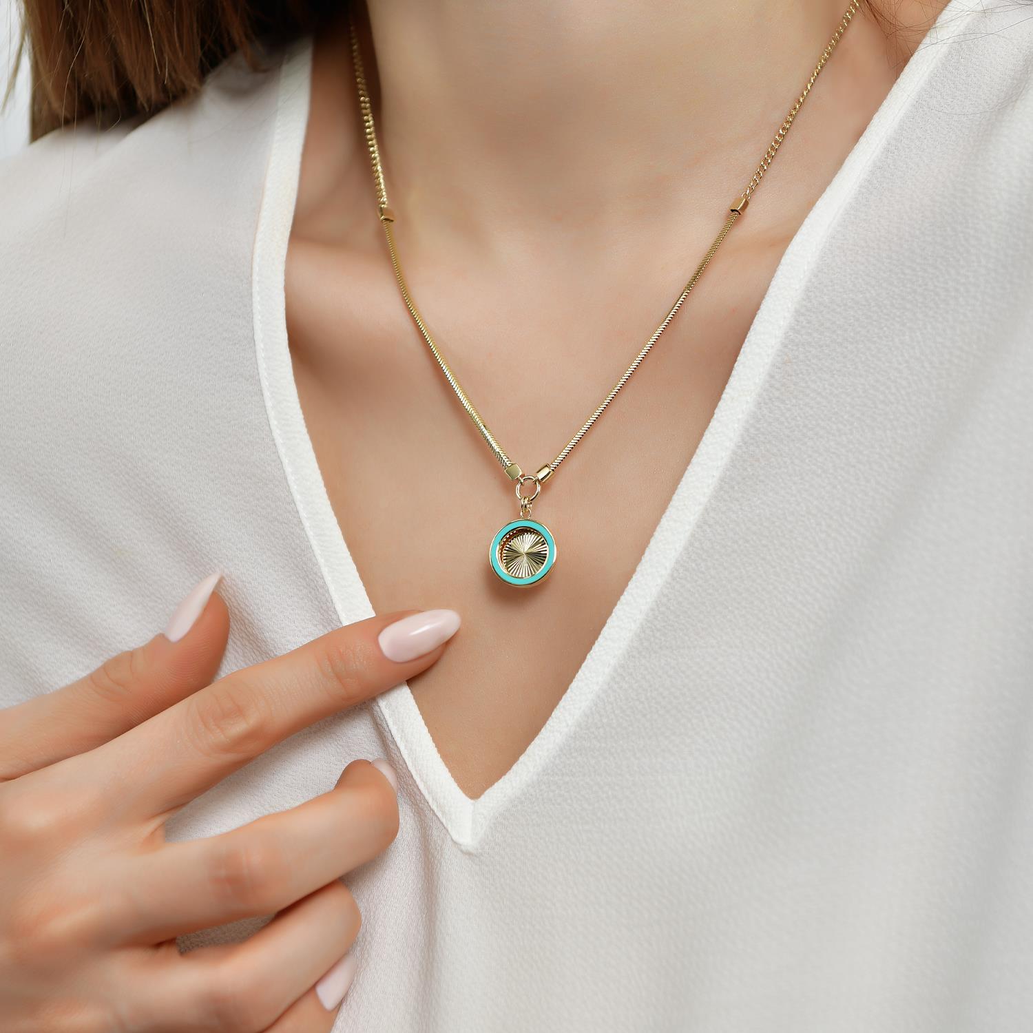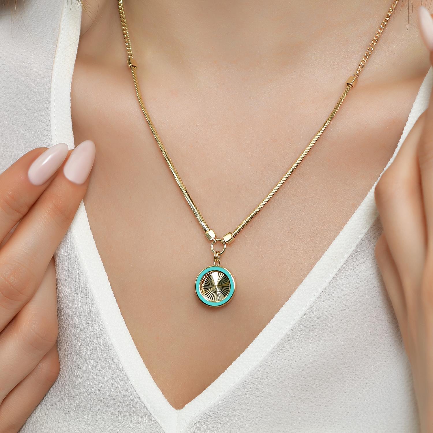 14 Ayar Altın Mineli Kalem İşçilikli Kolye