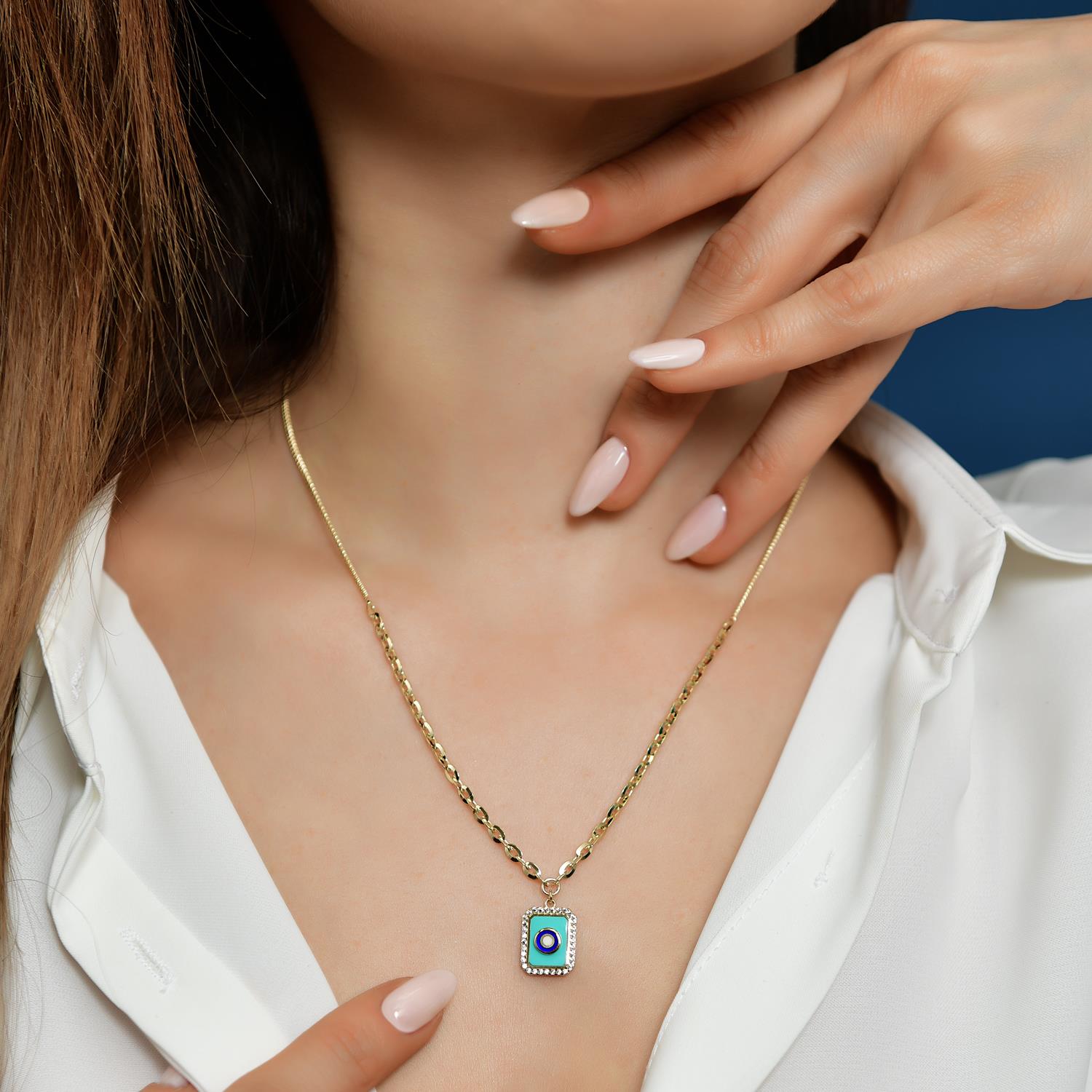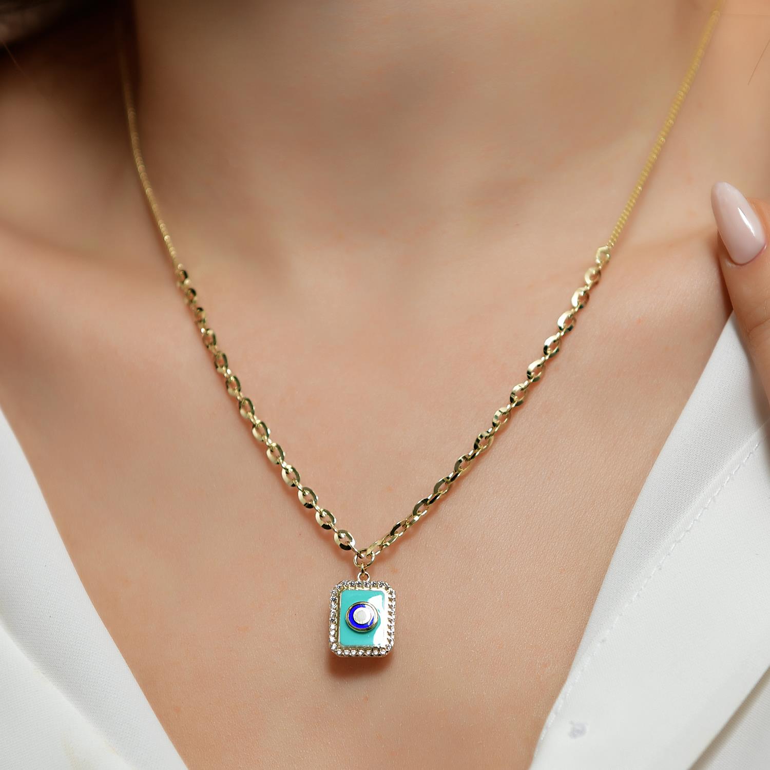 14 Ayar Altın Mineli Taşlı Kolye