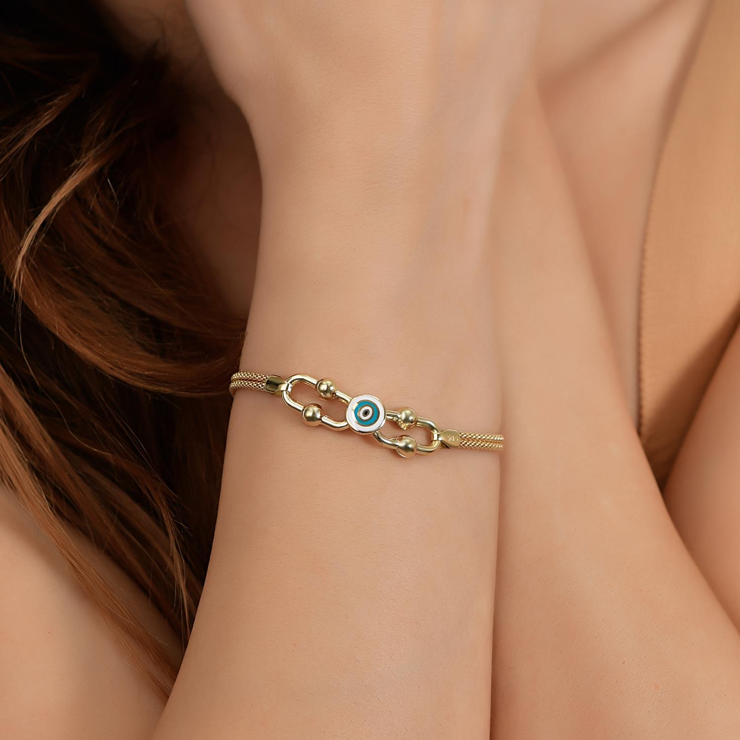14 Ayar Altın Nazar Zincirli Bileklik