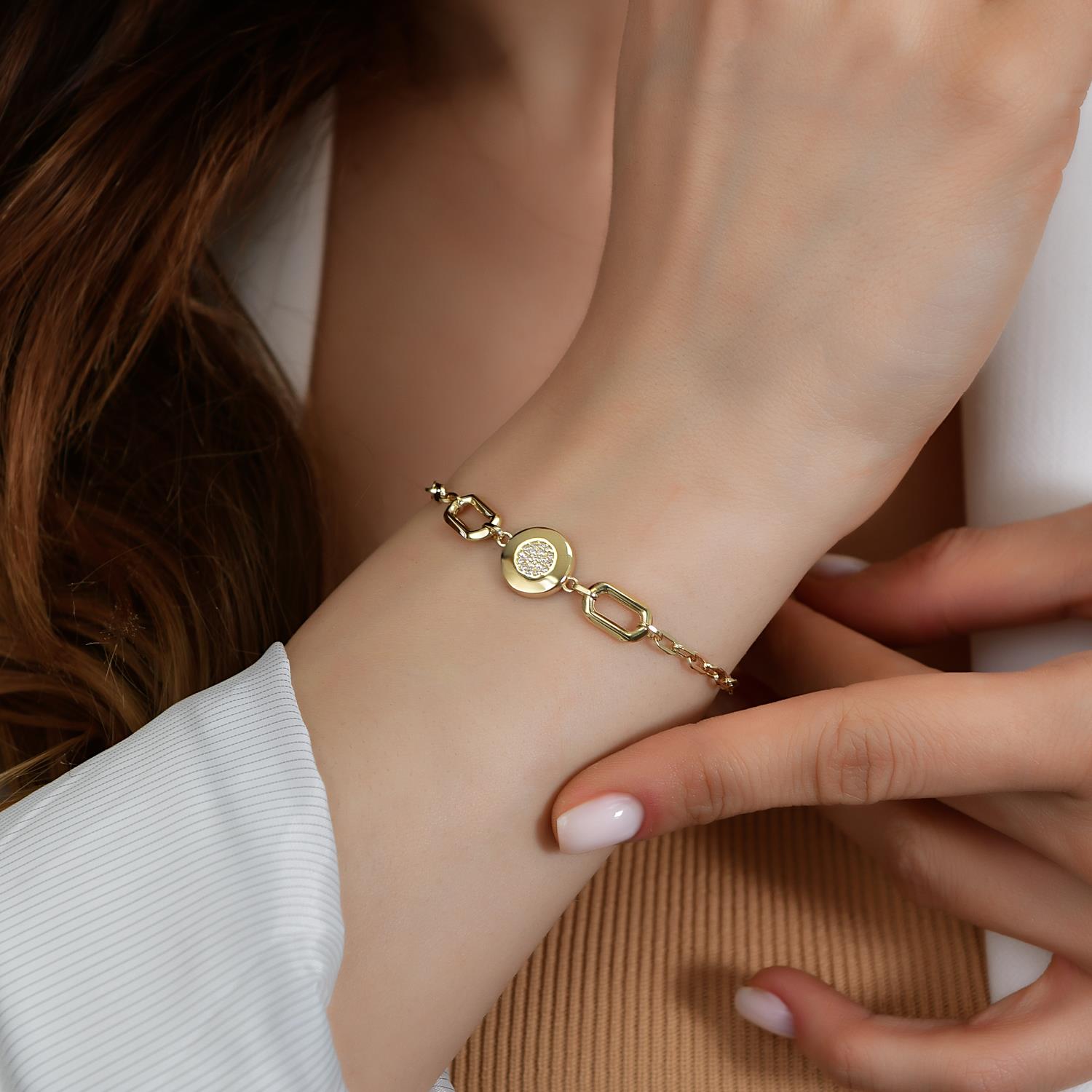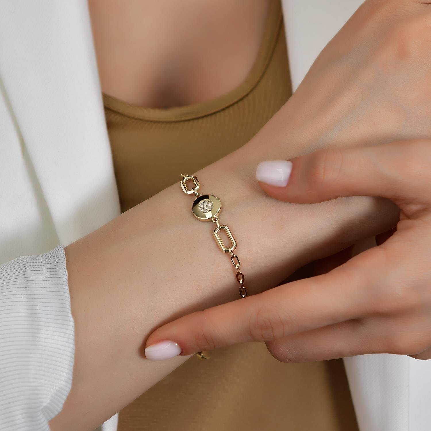 14 Ayar Altın Taşlı Plaka Bileklik