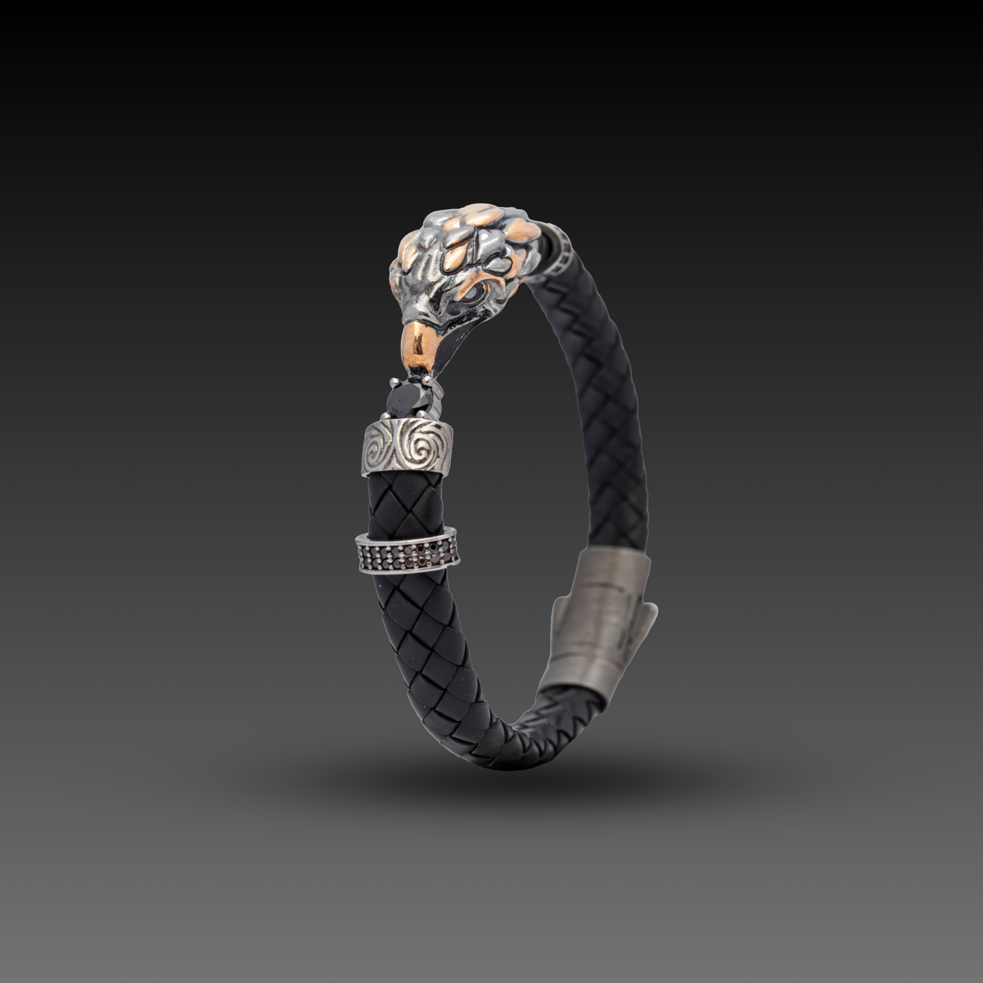 Kartal figürlü siyah taşlı italyan örme kordon bileklik.